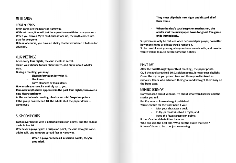 Narrowin is a tabletop role-playing game about myths,urban legends, small-town secrets and the people who spread them.